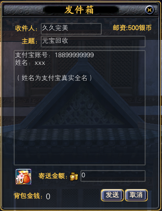 1、回收时需要邮寄100金整的元宝袋,100金起回收。